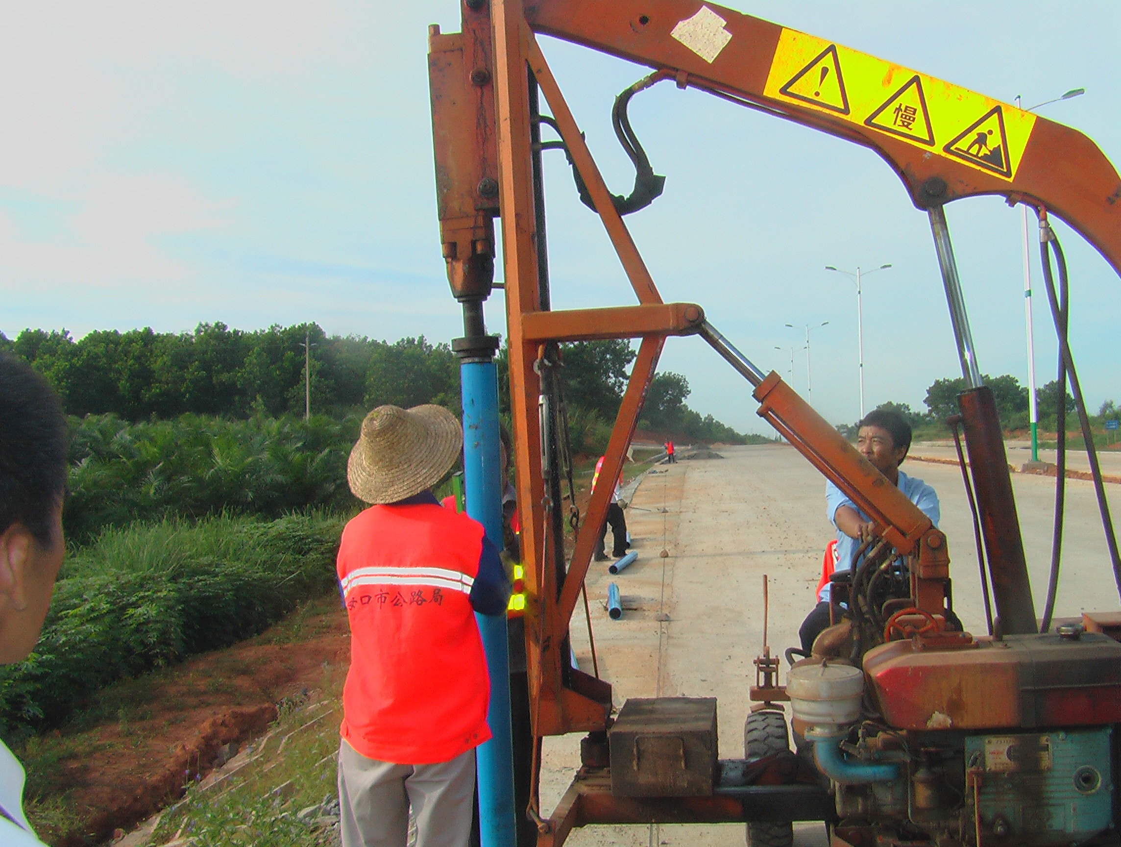 我公司拥有五台液压式打桩机,三台钻孔机。公司下设二个专业施工队,每队大约10人,具备了完成大型施工任务的能力。多年来形成了独特的平衡补差放样方法,经历过各种复杂地质条件下的波形梁施工安装任务;公司拥有3000米/日城市道路隔离护栏、临时护栏生产线,可满足重大节庆活动及交通应急。